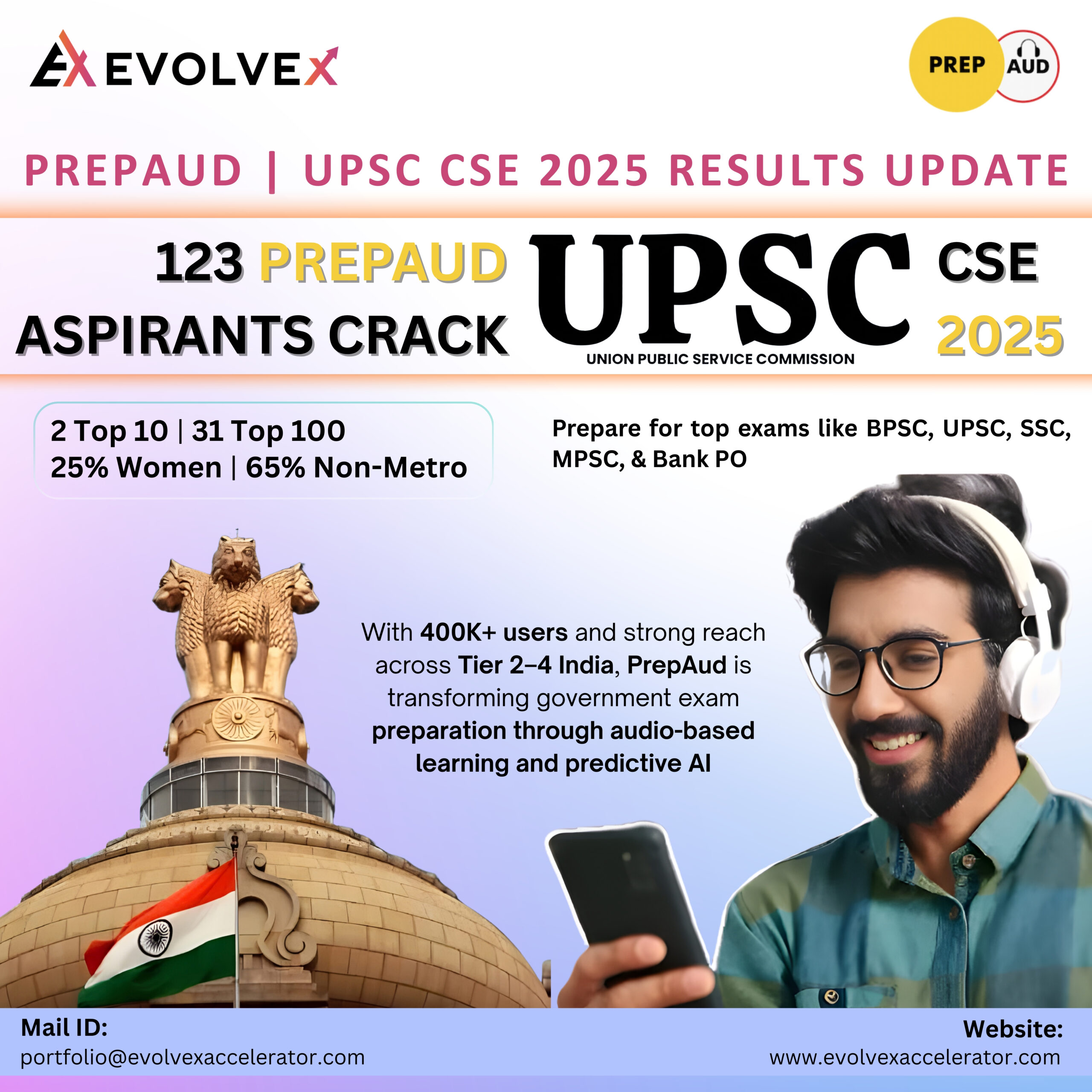 PrepAud enabled 123 UPSC selections, showcasing impact of tech-driven learning for aspirants across India.